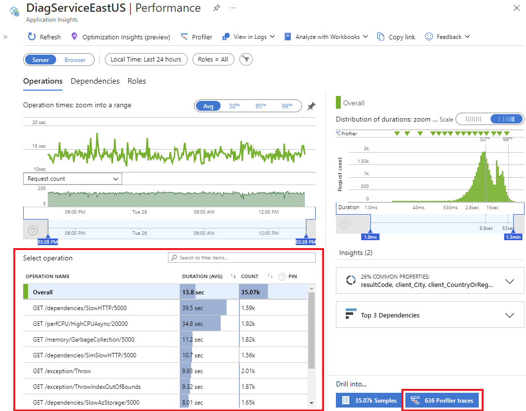 Nachdem Sie den Application Insights Profiler für .NET aktiviert haben, können Sie folgende Aufgaben ausführen: