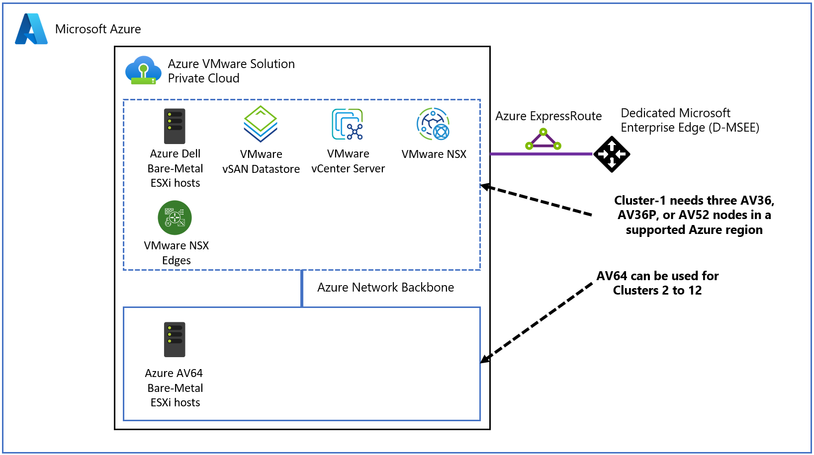**AV64-Voraussetzung: Eine private Azure VMware-Lösung, die mit AV36, AV36P oder AV52 bereitgestellt wird, ist vor dem Hinzufügen von AV64 erforderlich.