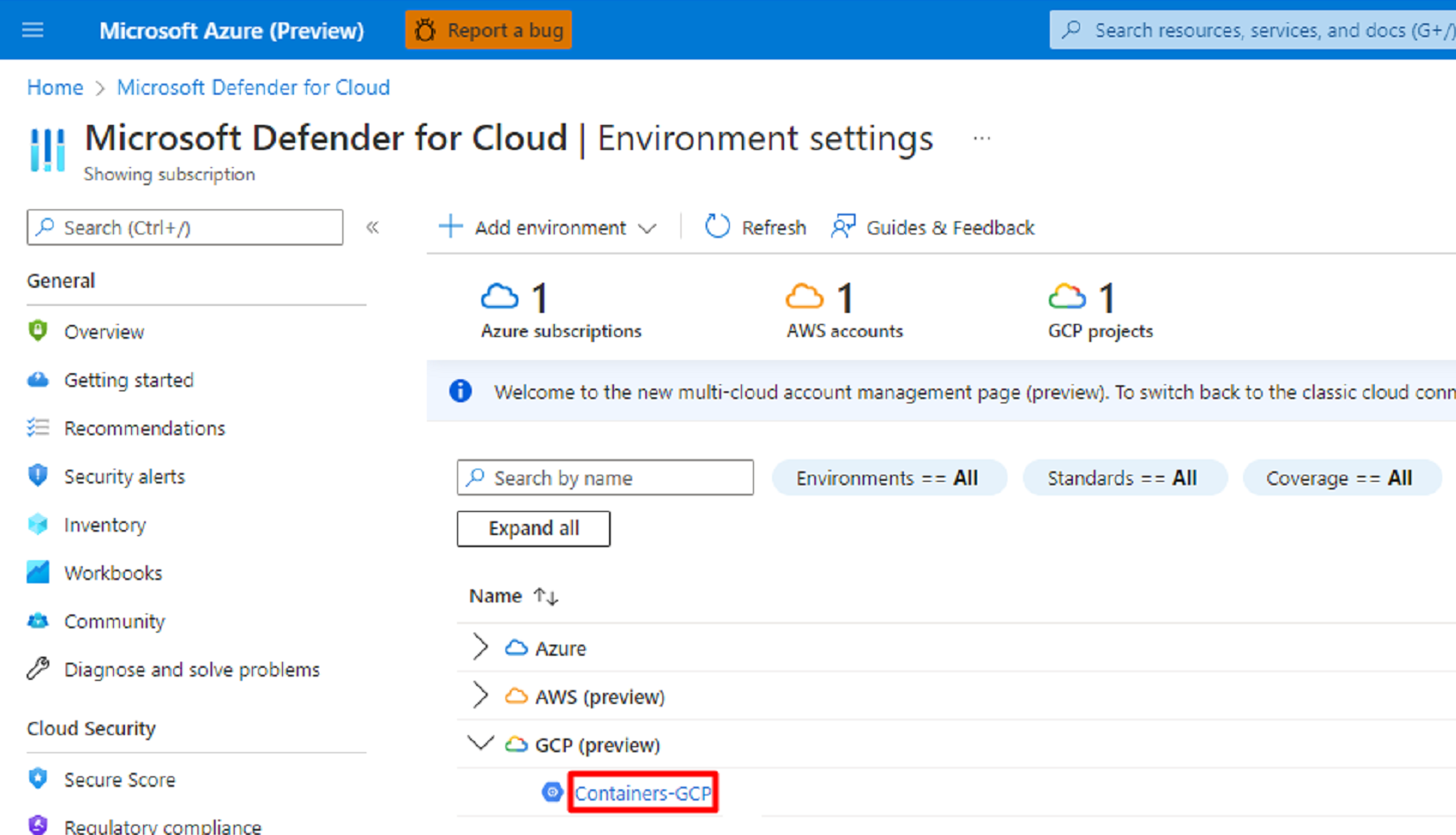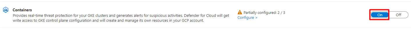 Aktivieren des Defender for Containers-Plans für Ihr GCP-Projekt