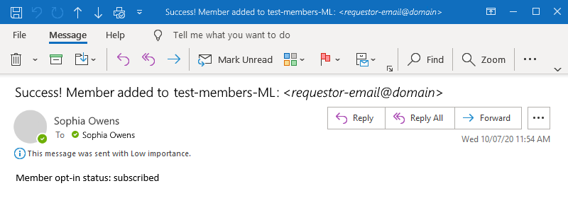 In diesem Beispiel wird test-members-ML verwendet.Status Ja < member-subscription-status> Status des Abonnements des neuen Mitglieds