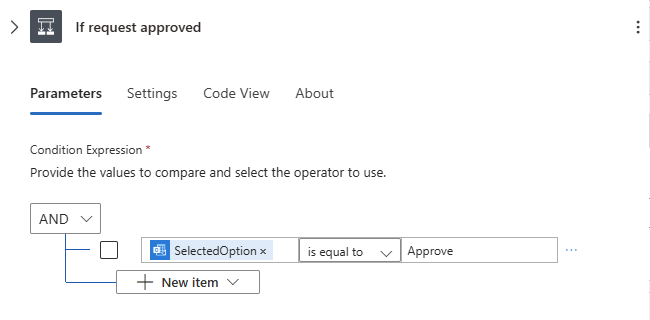 Erstellen Sie eine Bedingung, die überprüft, ob die genehmigende Person Genehmigen ausgewählt hat.