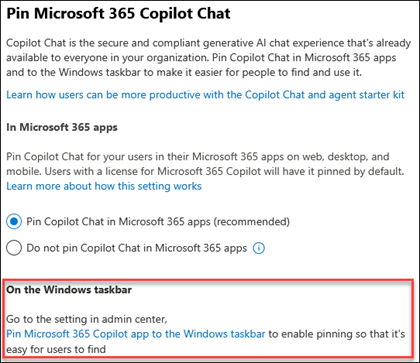 - Wählen Sie Microsoft 365 Copilot Chat anheften aus.