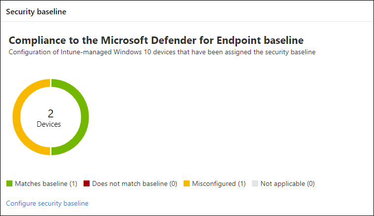 Wählen Sie im Karte Sicherheitsbaseline konfigurieren die Option Sicherheitsbaseline konfigurieren aus, um zur Intune-Geräteverwaltung zu wechseln. Eine ähnliche Übersicht über die Baselinekonformität wird angezeigt.