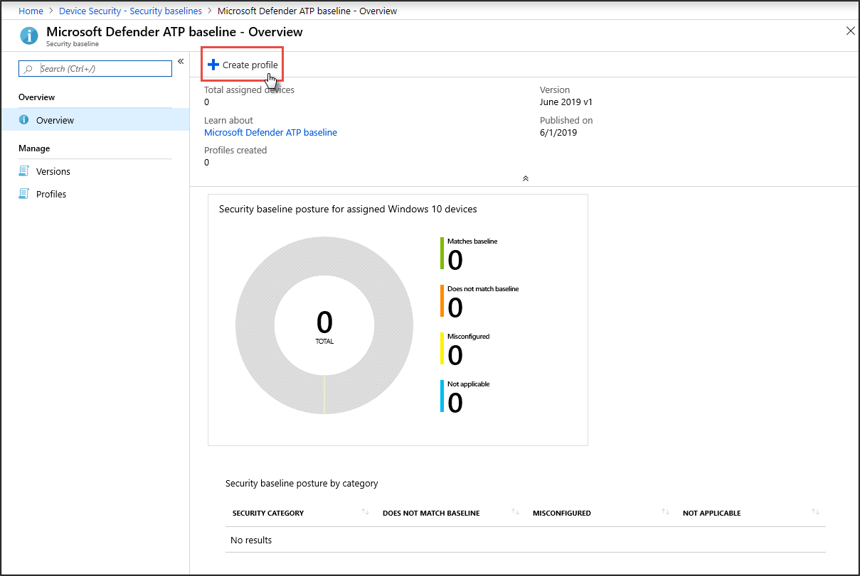 Alternativ können Sie im Microsoft-Azure-Portal unter Alle Dienste > Intune > Gerätesicherheitsbaselines Microsoft Defender ATP-Baseline zur Defender für Endpunkt-Sicherheitsbaseline >>navigieren.