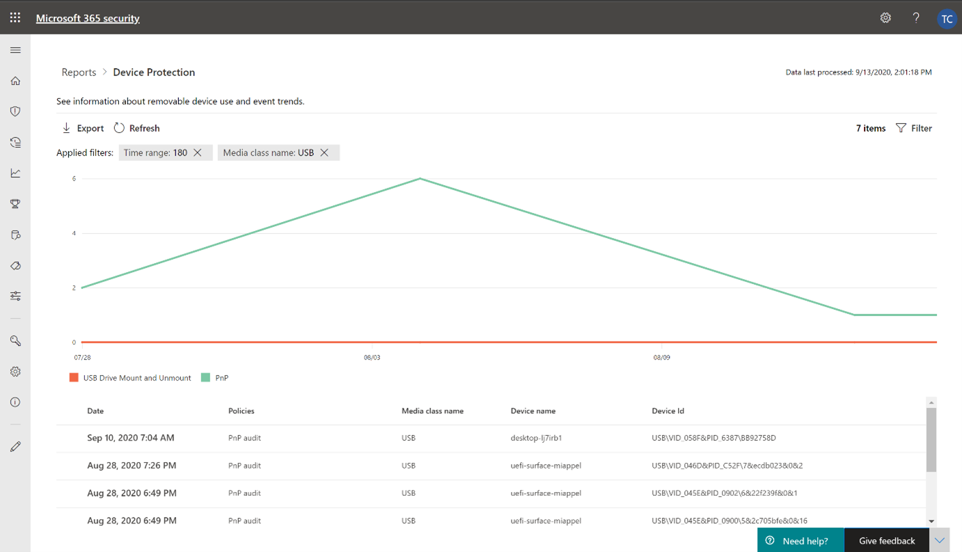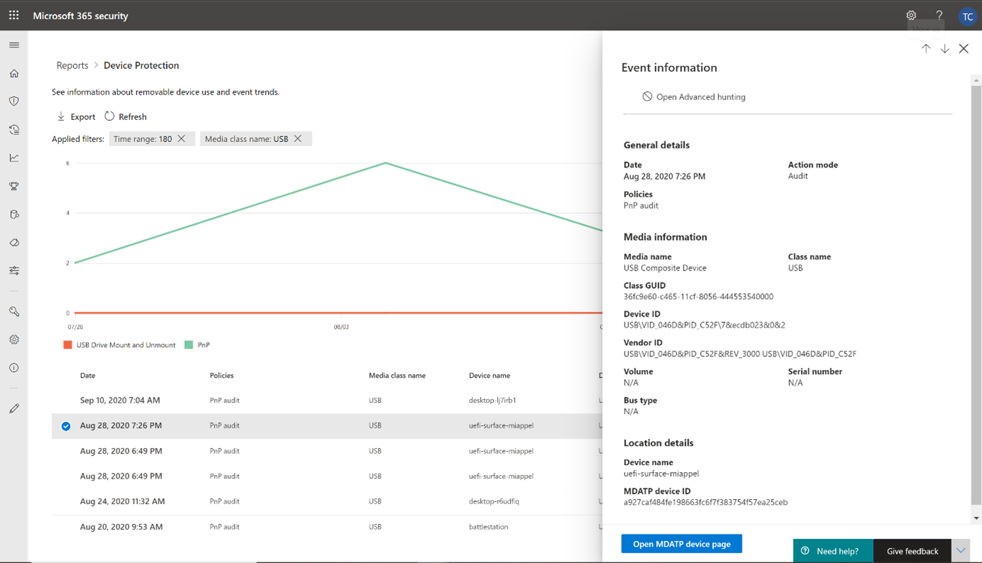 Microsoft Defender for Endpoint Gerätesteuerung trägt dazu bei, Ihre organization vor potenziellem Datenverlust, Schadsoftware oder anderen Cyberbedrohungen zu schützen, indem bestimmte Geräte mit den Computern der Benutzer verbunden werden können oder verhindert werden. Ihr Sicherheitsteam kann Informationen zu Gerätesteuerungsereignissen mit erweiterter Suche oder mithilfe des Gerätesteuerungsberichts anzeigen.