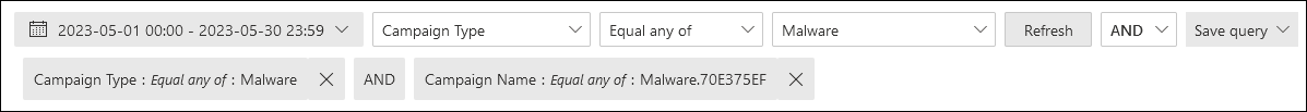 Nachrichten erkunden: Nutzen Sie die Leistungsfähigkeit von Threat Explorer, um die Kampagne weiter zu untersuchen, indem Sie einen der folgenden Werte in der Dropdownliste auswählen: