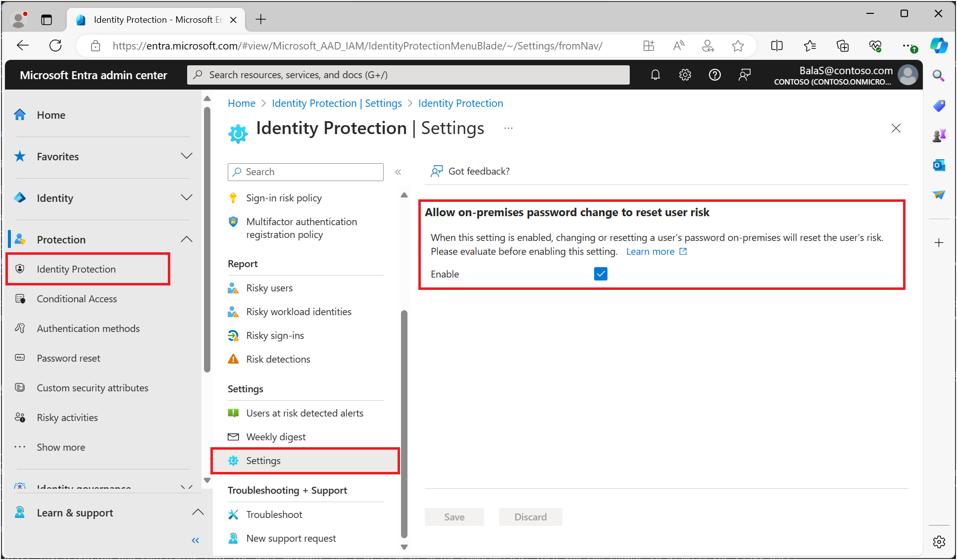 - Aktivieren Sie die Einstellung Lokale Kennwortänderung zulassen, um das Benutzerrisiko zurückzusetzen in Microsoft Entra ID Protection.