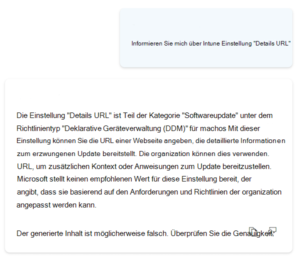 Wenn Sie Copilot verwenden, können Sie KI-generierte Informationen zu jeder Einstellung abrufen.