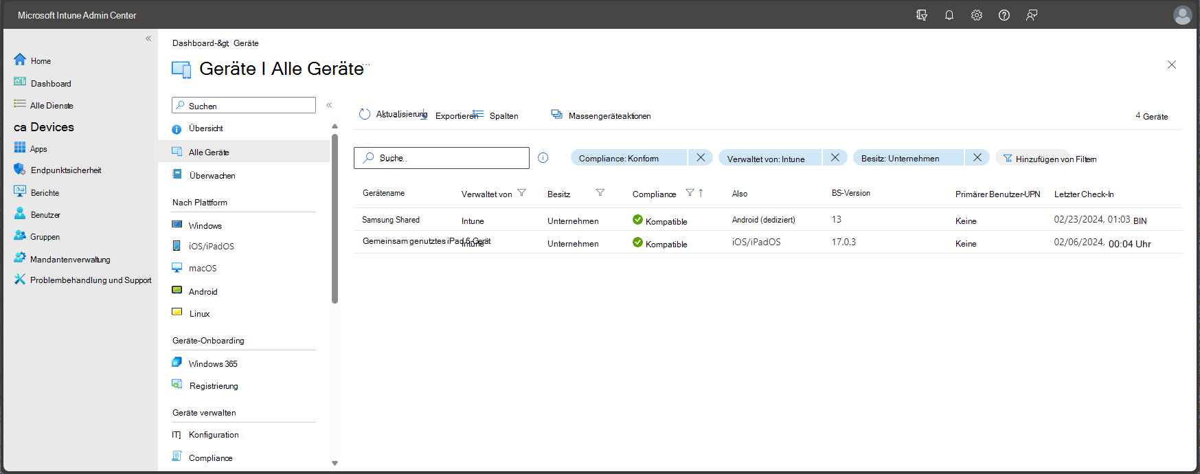 - Geräte, die für einen Benutzer oder ohne primären Benutzer registriert wurden