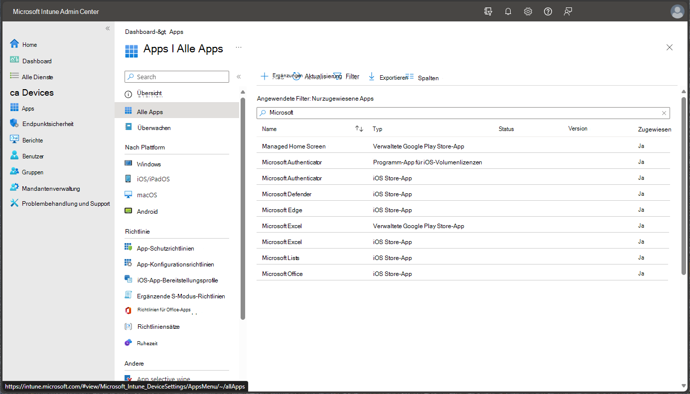 - Anpassen der Ansicht des Microsoft Intune Admin Centers