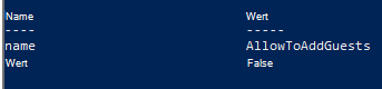 Screenshot: Beispiel für die Ausführung eines PowerShell-Befehls zum Überprüfen der Gruppeneinstellungen