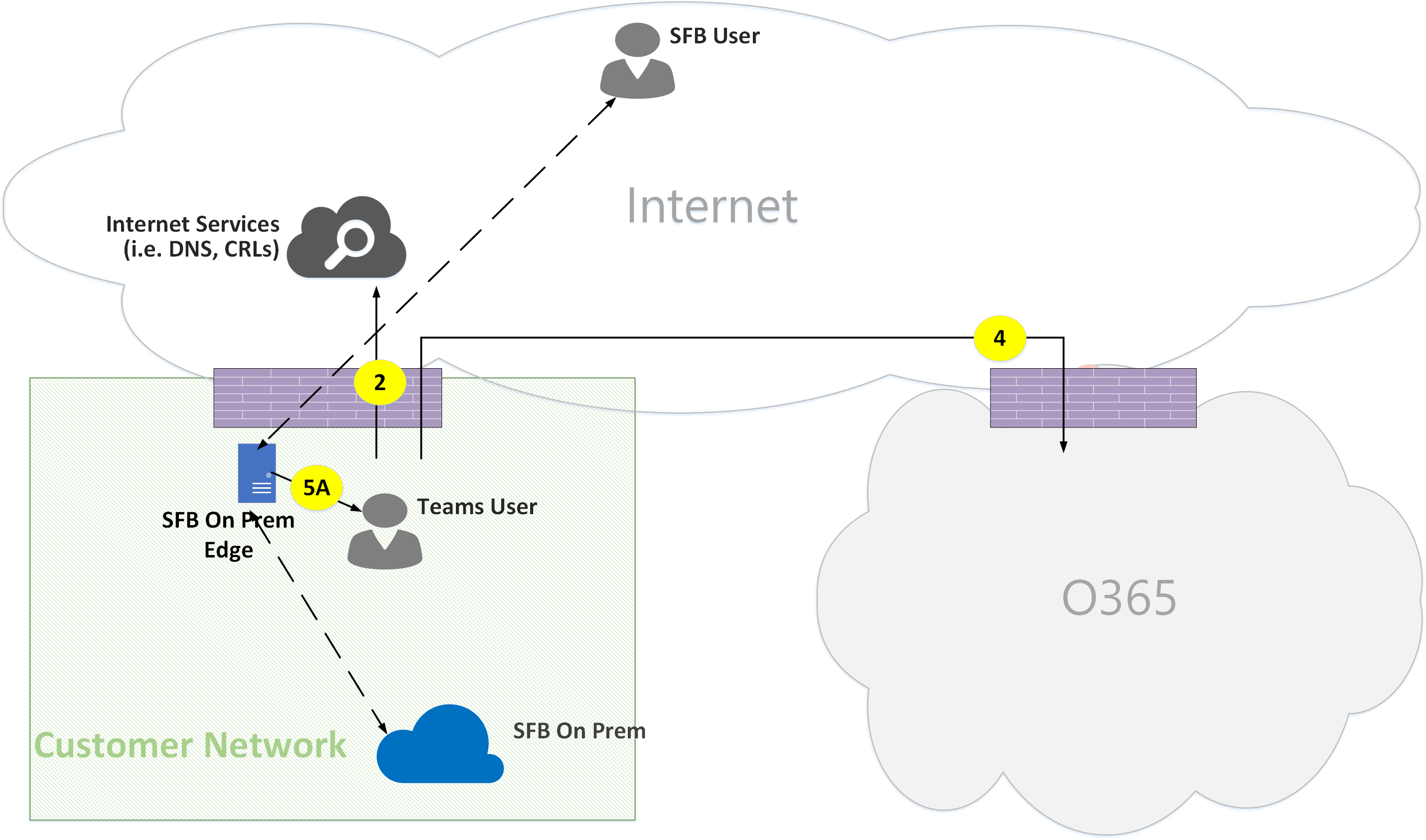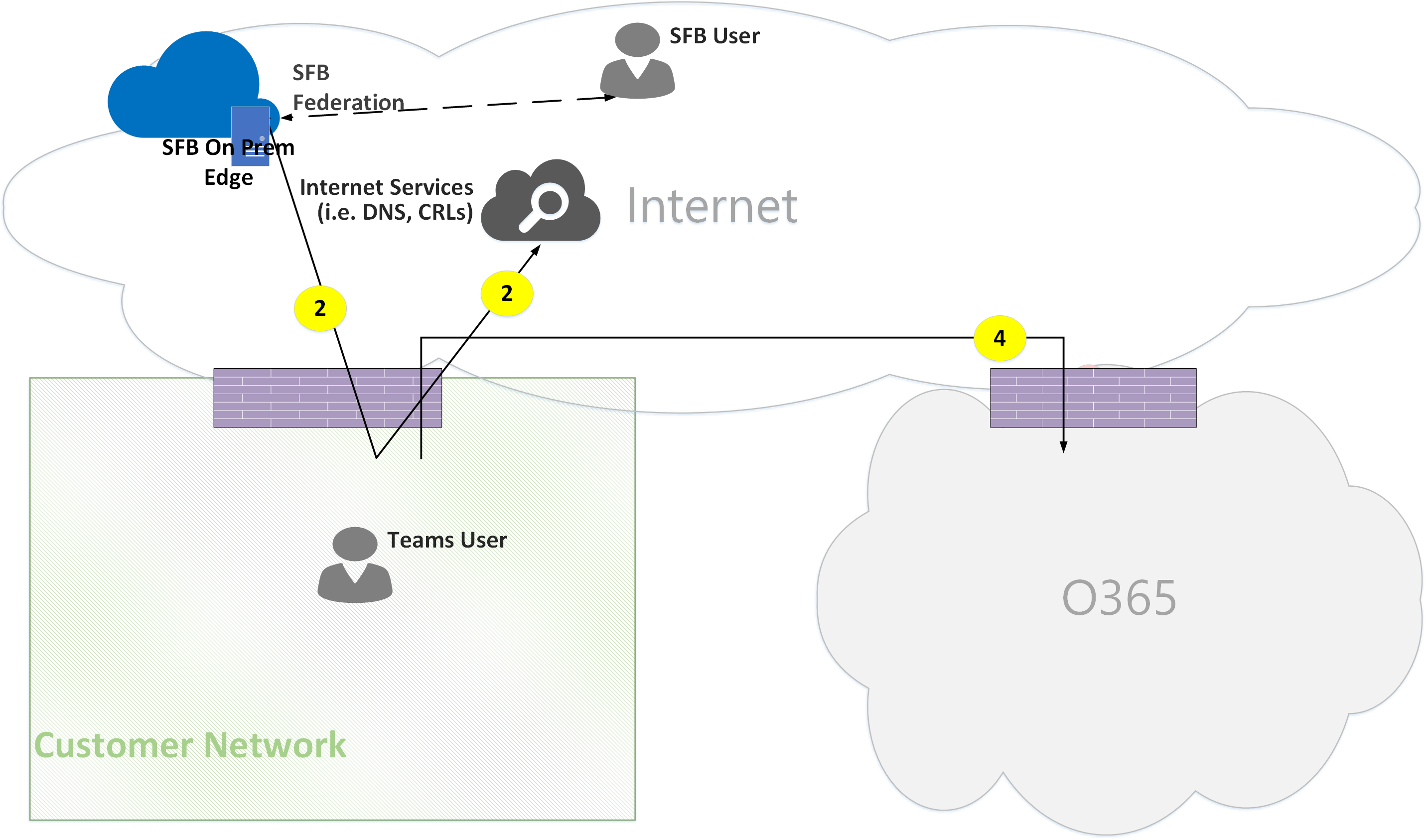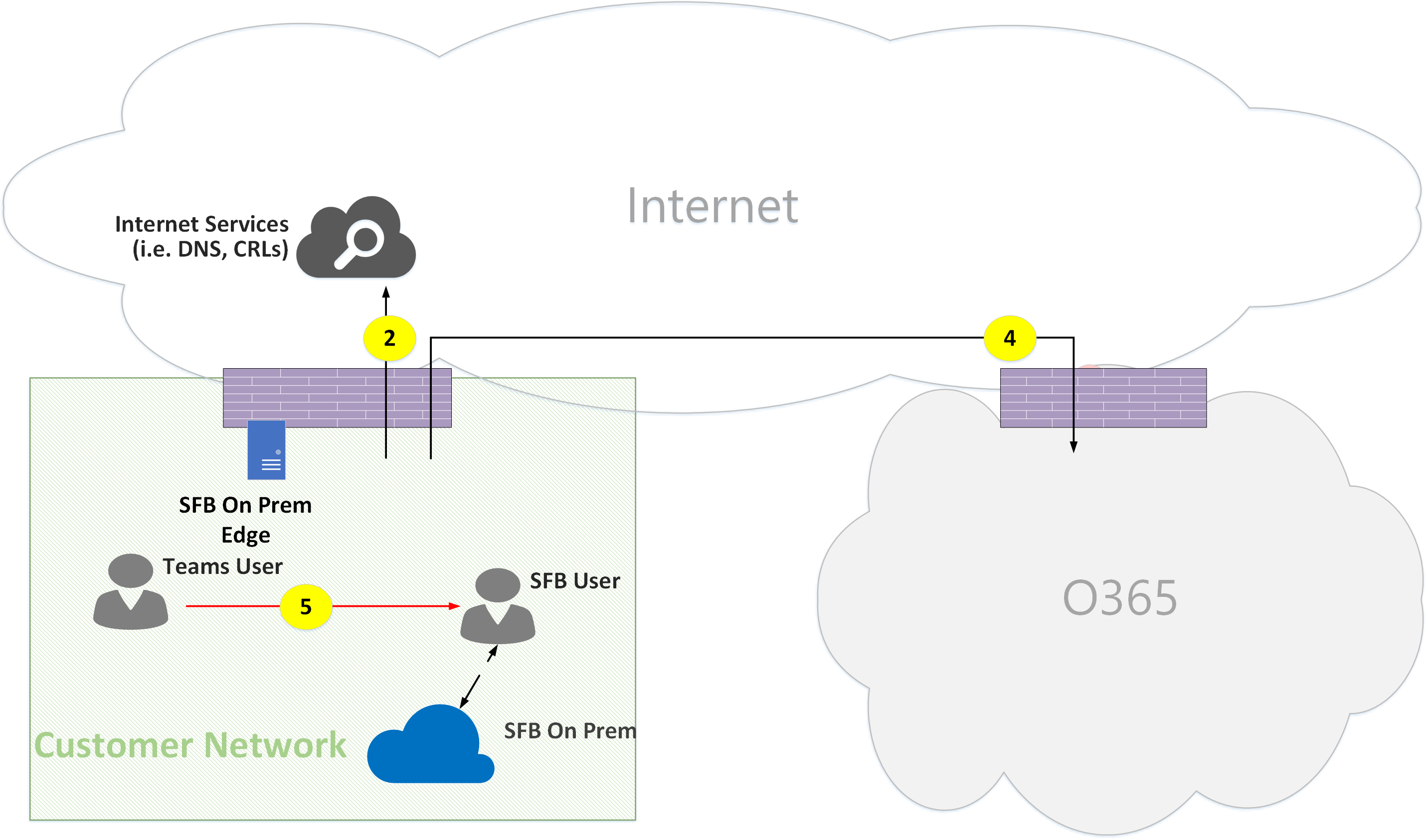 - Flow 4 : Stellt einen von einem Benutzer im Kundennetzwerk initiierten Flow zu Microsoft 365 Teams-Endpunkten dar.