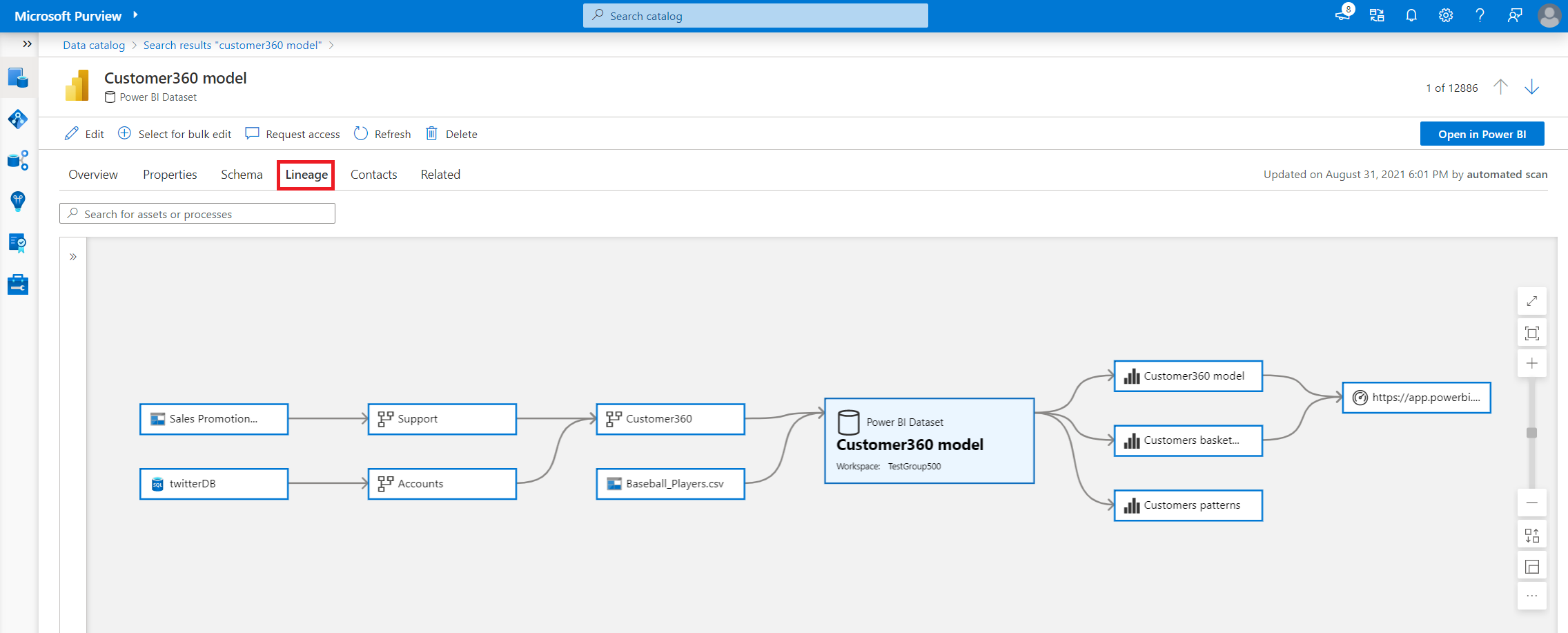 Informationen zur Datenherkunft im Unified Catalog finden Sie unter Anzeigen von Datenassetdetails und Datenherkunftsinformationen.