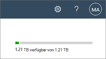 Sehen Sie sich oben rechts auf der Seite die verfügbare Speichermenge und den Gesamtspeicher für Ihr Abonnement an. (Wenn Ihre Organisation Multi-Geo in Microsoft 365 konfiguriert hat, können Sie auf die Leiste zeigen, um die am aktuellen geografischen Standort und an allen anderen geografischen Standorten verwendete Speichermenge anzuzeigen.)