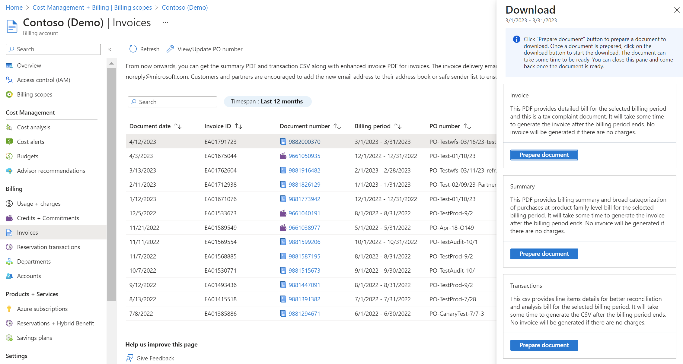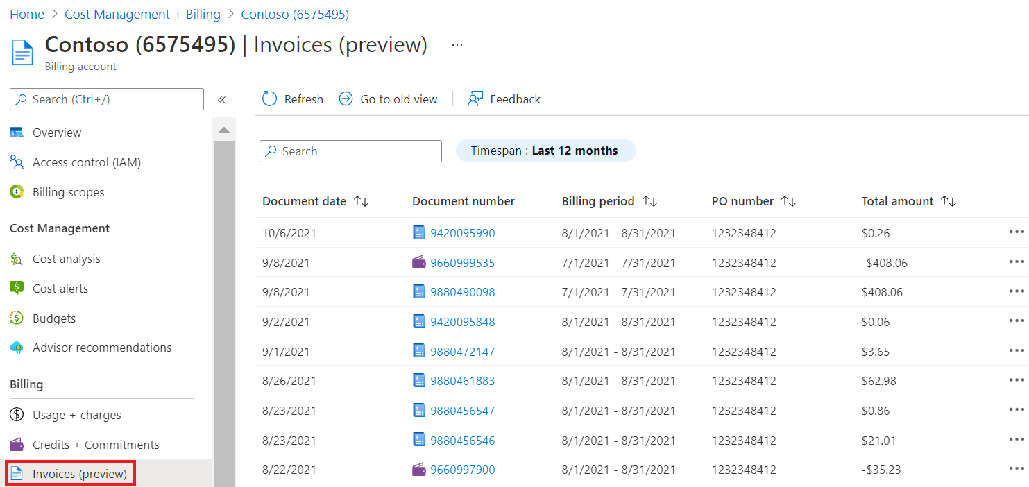 Download or view your Azure billing invoice