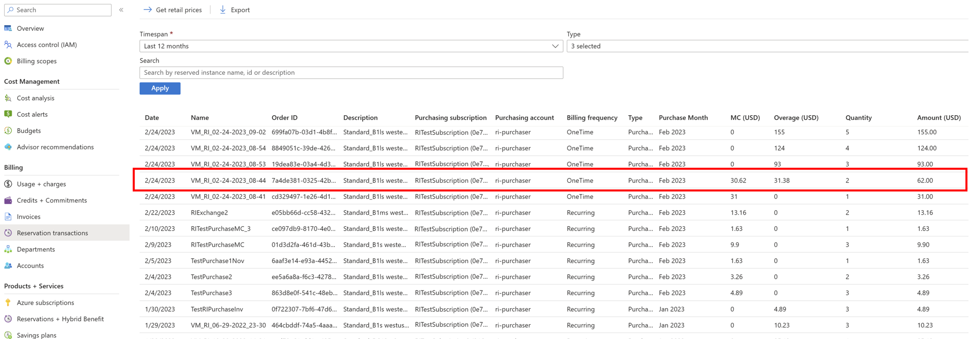 - In the Azure portal, navigate to Reservation Transactions.