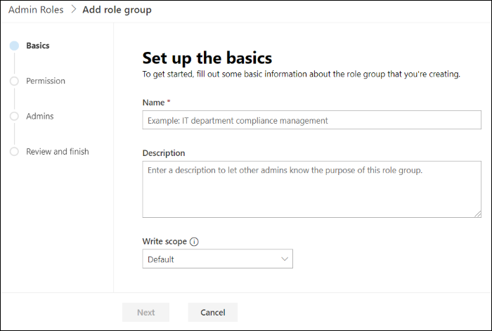 If you're copying a role group, the permissions from the original role group are already selected, but you can change them.