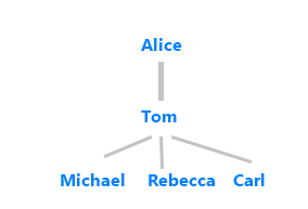 Consider a Human Resources app that reports on the organizational chart in relation to an employee. Given an employee's name and relationship, LUIS returns the employees involved. Consider an employee, Tom, with a manager named Alice, and a team of subordinates named: Michael, Rebecca, and Carl.