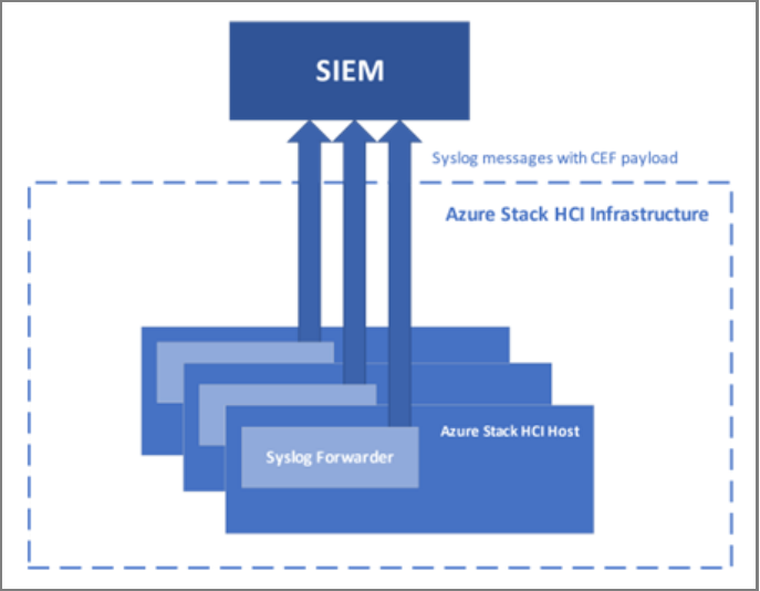 Azure Local has an integrated syslog forwarder that, once configured, generates syslog messages defined in RFC3164, with the payload in Common Event Format (CEF).