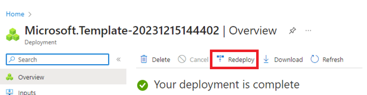 Once validation is complete, select Redeploy.