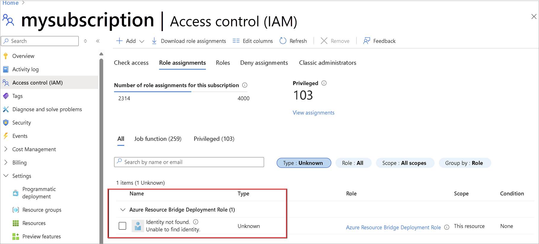 Workaround: To identify the zombie role assignments, go to Access control (IAM) > Role assignments > Type : Unknown tab. These assignments are listed as Identity not found. Unable to find identity. Delete such role assignments and then retry ARM template deployment.