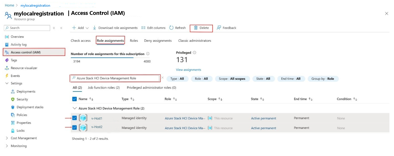 Workaround: The failed resource on the Deployment details page specifies the role assignment name. If the resource name is AzureStackHCIDeviceManagementRole-RoleAssignment then role assignment failed for the Azure Stack HCI Device Management Role. Note this role name and go to Resource Group > Access Control (IAM) > Role Assignments. Search for the corresponding name and delete the existing role assignments there. Redeploy your template.
