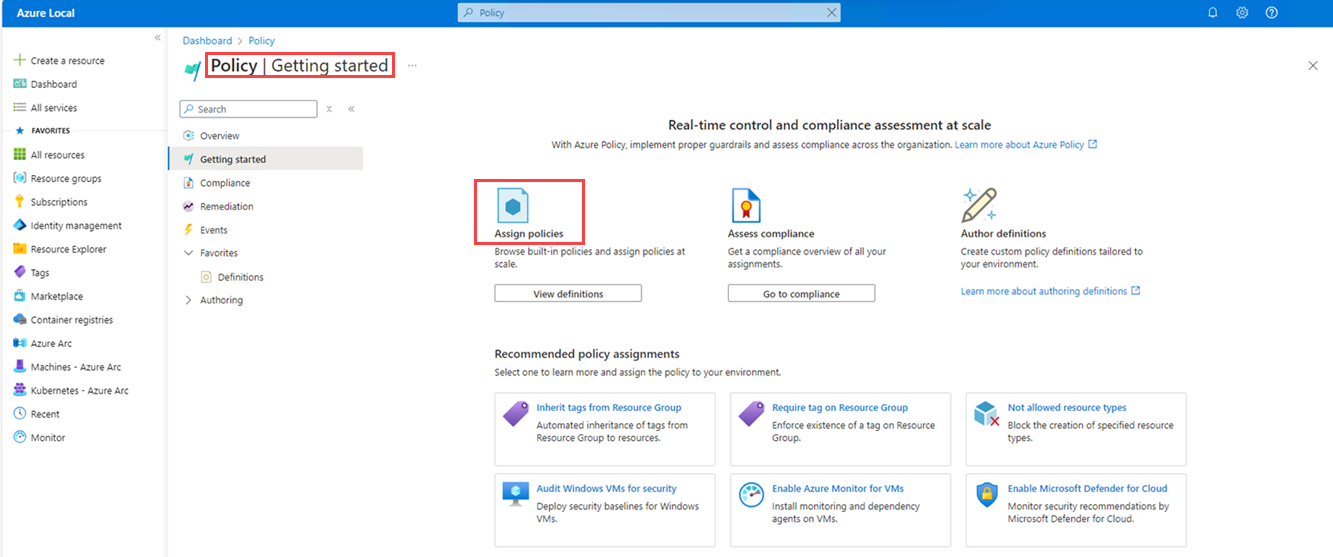 Azure Policy for Azure Local disconnected operations lets you enforce policies across all supported Azure services, so you manage and set up resources at scale.
