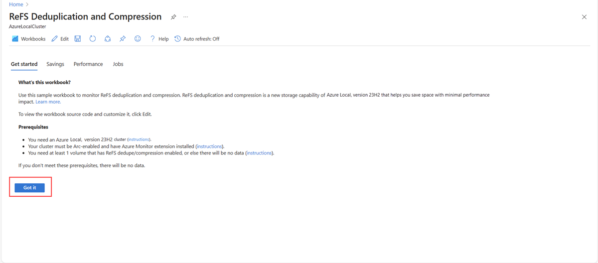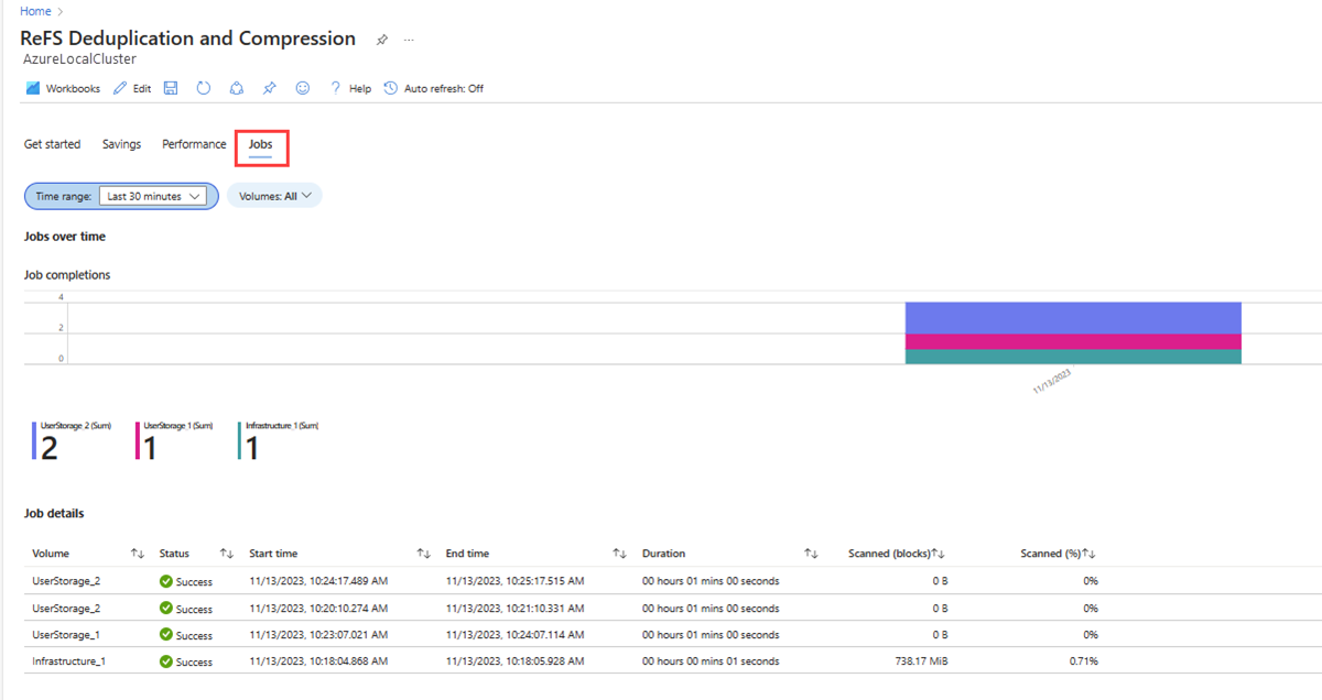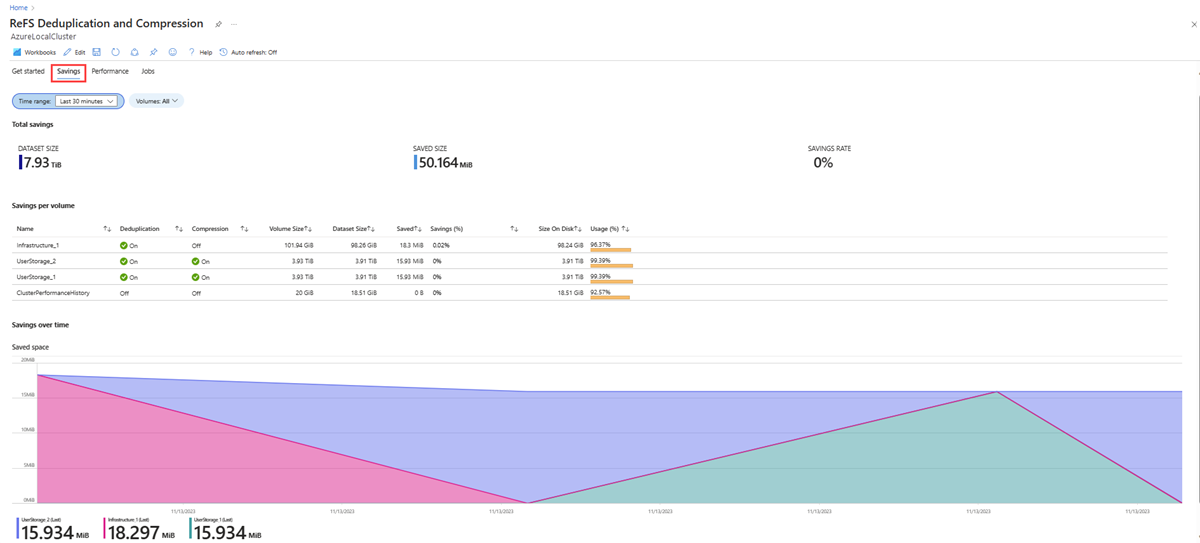 This article describes how to use Insights to monitor key Azure Local features, such as Resilient File System (ReFS) deduplication and compression.