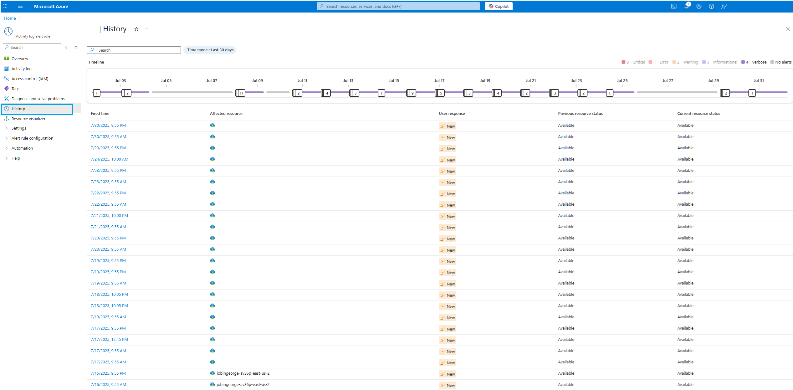 View triggered alerts: search for your alert rule name and select the History tab. You can click on any of the triggered alerts to know about it.