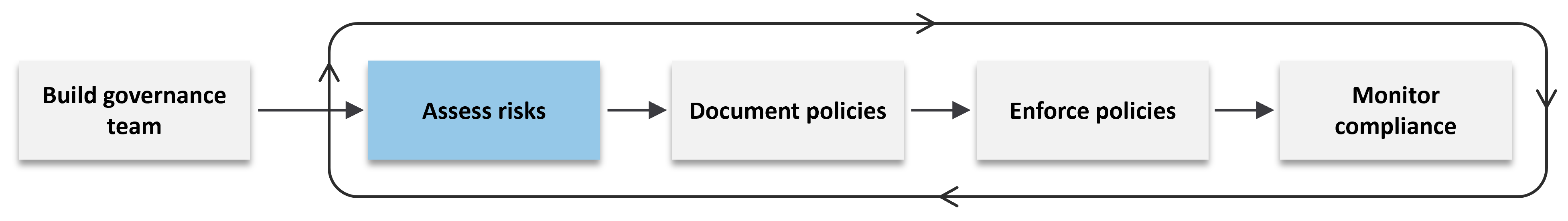 Once the governance team is in place, the next step is to identify and evaluate all significant risks associated with your organization’s use of the cloud. A "risk" in this context is any potential unwanted outcome, such as a security breach, compliance violation, service outage, or cost overrun, that could result from how the cloud is used. By assessing risks, the governance team gains the information needed to craft relevant policies in the next step. This risk assessment should be conducted initially during governance setup, and then revisited regularly and whenever major changes occur, like new projects, new threats, audits, and incidents.