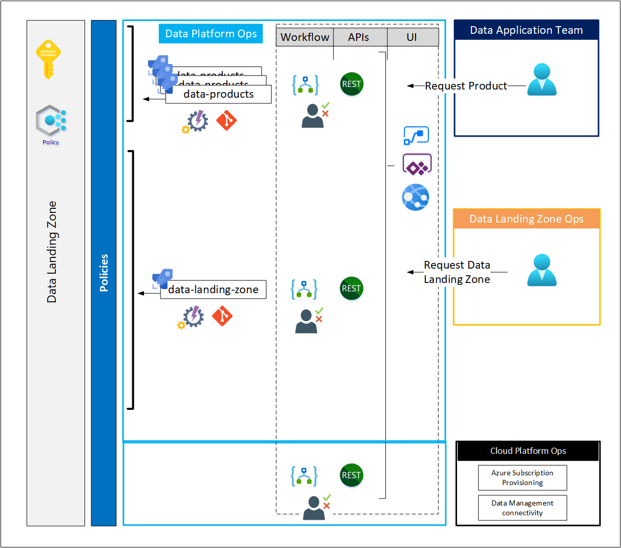 The following diagram shows how automation principles are implemented for a data landing zone.