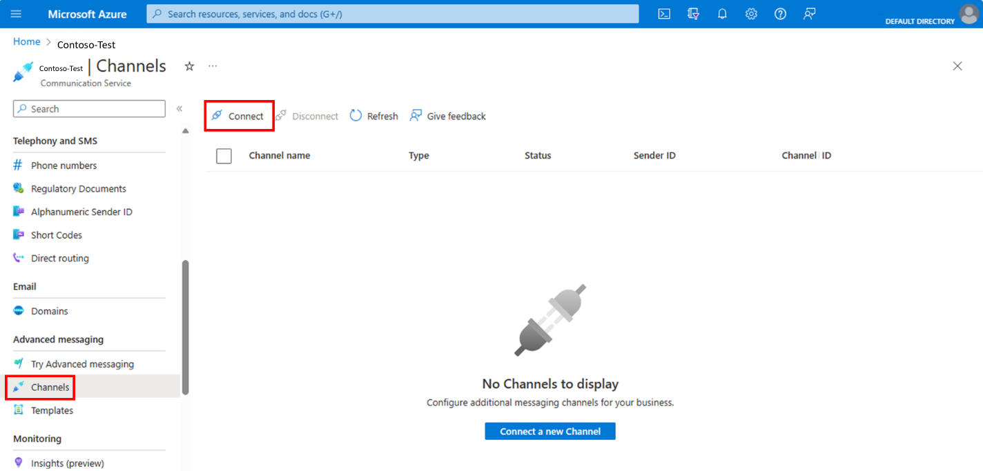 On the left navigation bar, select on the WhatsApp channel under the Channels header. To add a new WhatsApp Business Account, select on the Connect button.