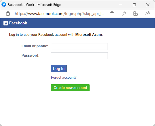 Selecting on the Sign-In with Facebook button opens a new window and ask you to sign into Facebook.
