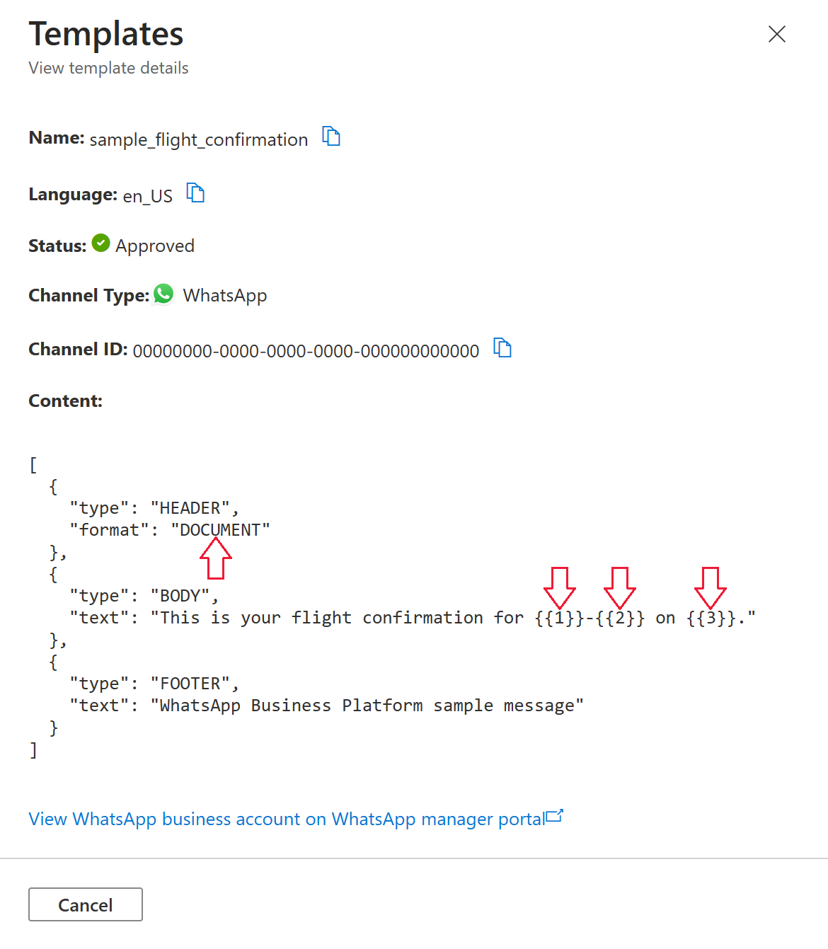 For more information about WhatsApp requirements for templates, see the WhatsApp Business Platform API references: