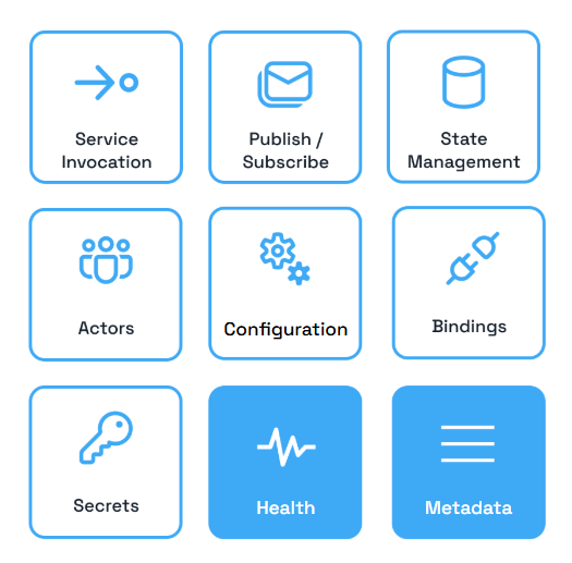Health | GA | Health check probes that monitor readiness or liveness of Dapr and initialization readiness of SDKs. The health API is only available for HTTP. |