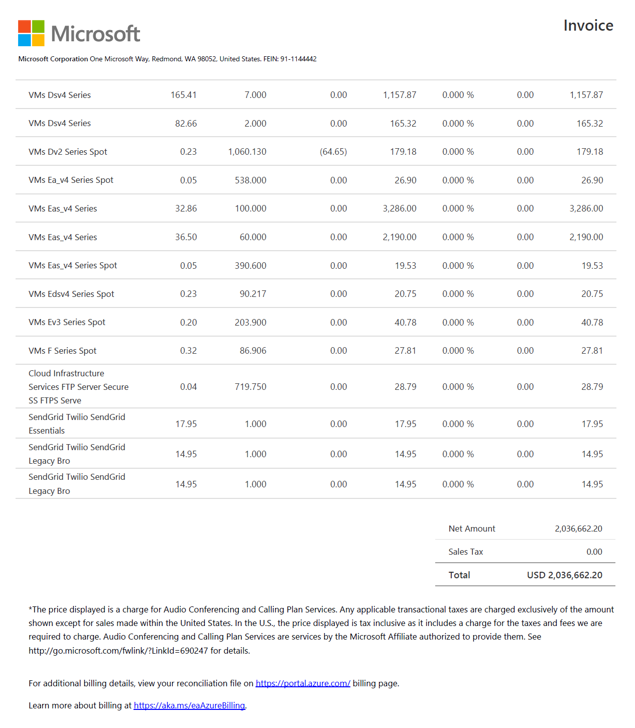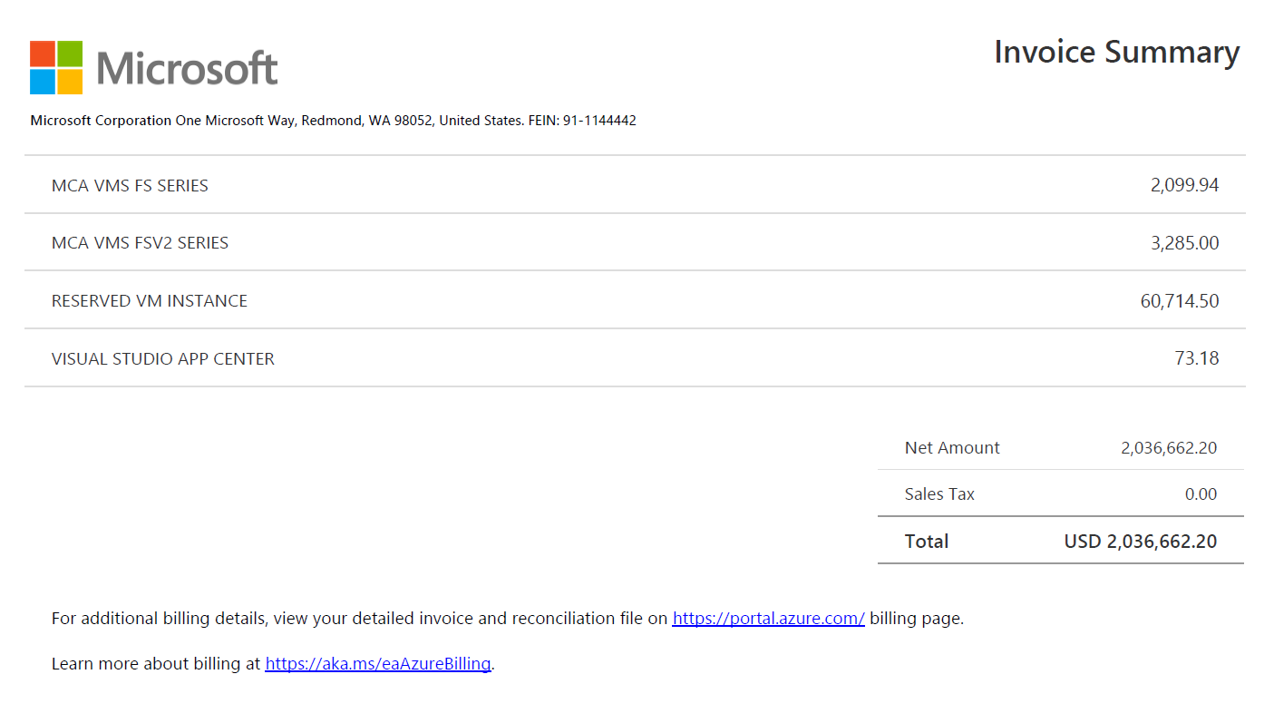 Invoice – The number is a unique number generated by Microsoft that identifies your spending for the corresponding billing period.
