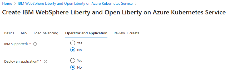 This tutorial deploys Open Liberty Operator using the defaults. Optionally you can deploy WebSphere Liberty Operator by selecting Yes for IBM supported?.