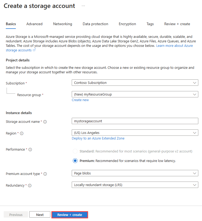 Select the Select button.Performance Premium is the only available option for an Extended Zone. Premium account type Select Page blobs. Other available options are Block blobs and File shares. Redundancy Locally Redundant Storage (LRS) is the only available option for an Extended Zone. *If there's no Extended Zone paired with the selected region, you won’t be able to select an Extended Zone ___location.