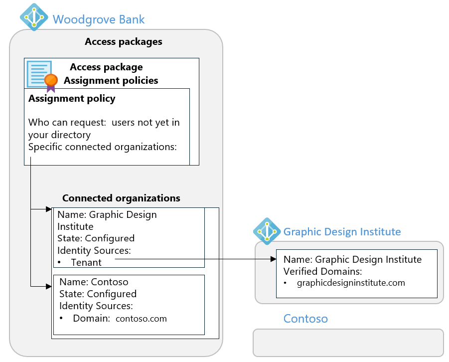 - In addition, external users that are using an organizational account from the Graphic Design Institute tenant would match the Graphic Design Institute-connected organization and be allowed to request the access package. And, because Graphic Design Institute uses Microsoft Entra ID, any users with a principal name that matches another verified ___domain that's added to the Graphic Design Institute tenant, such as graphicdesigninstitute.example, would also be able to request access packages by using the same policy.
