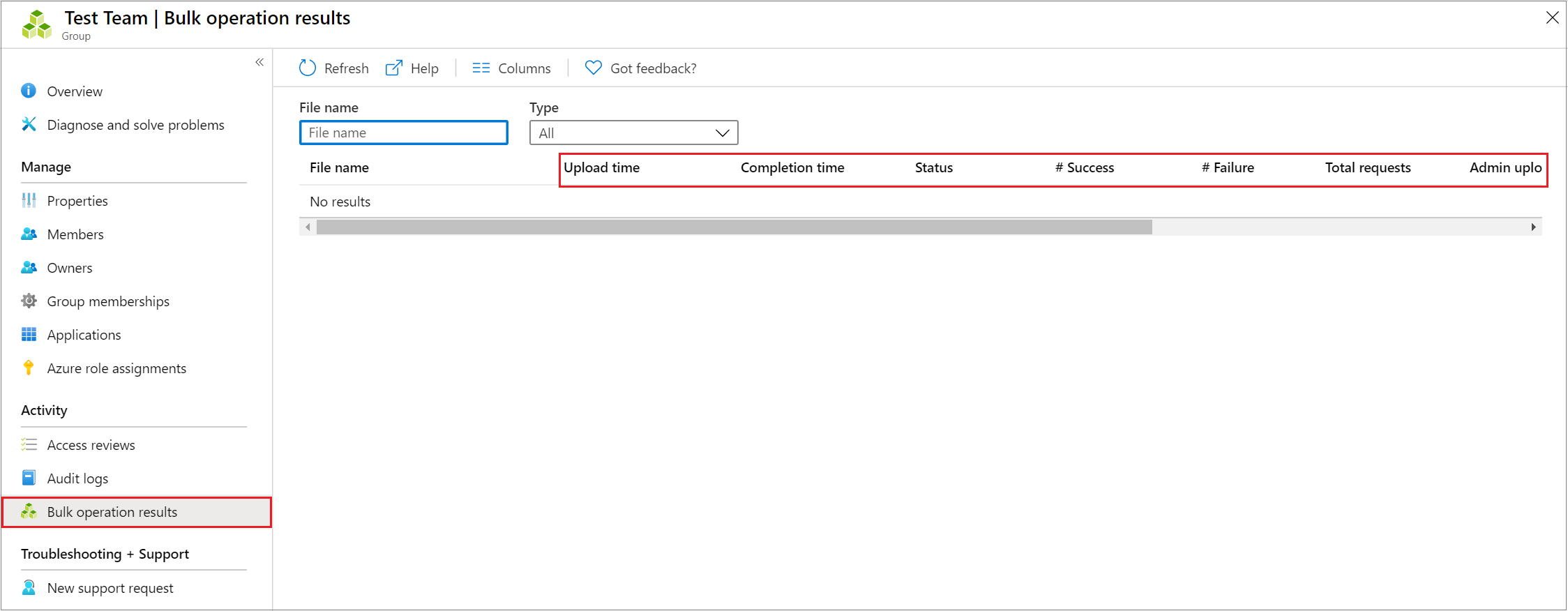 If you experience errors, you can download and view the results file on the Bulk operation results page. The file contains the reason for each error. The file submission must match the provided template and include the exact column names. For more information about bulk operations limitations, see Bulk download service limits.