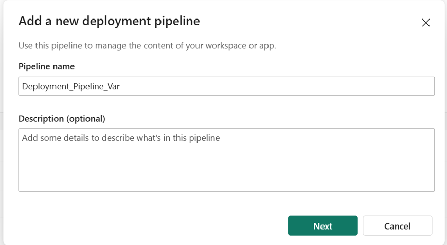 Name the pipeline Deployment_Pipeline_Var, and then select Next.