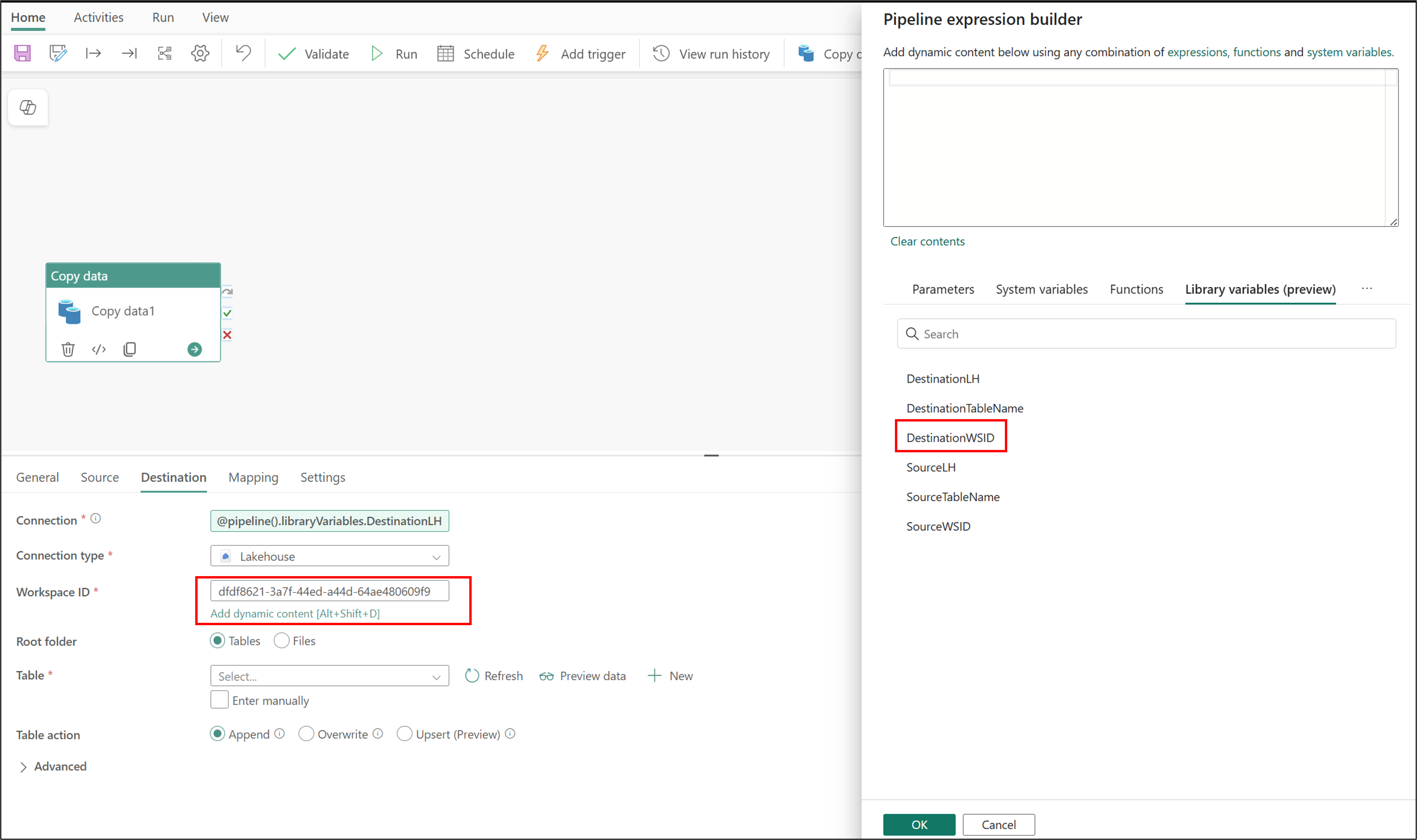 String <GUID of SourceLH_Test lakehouse> Destination_WSID