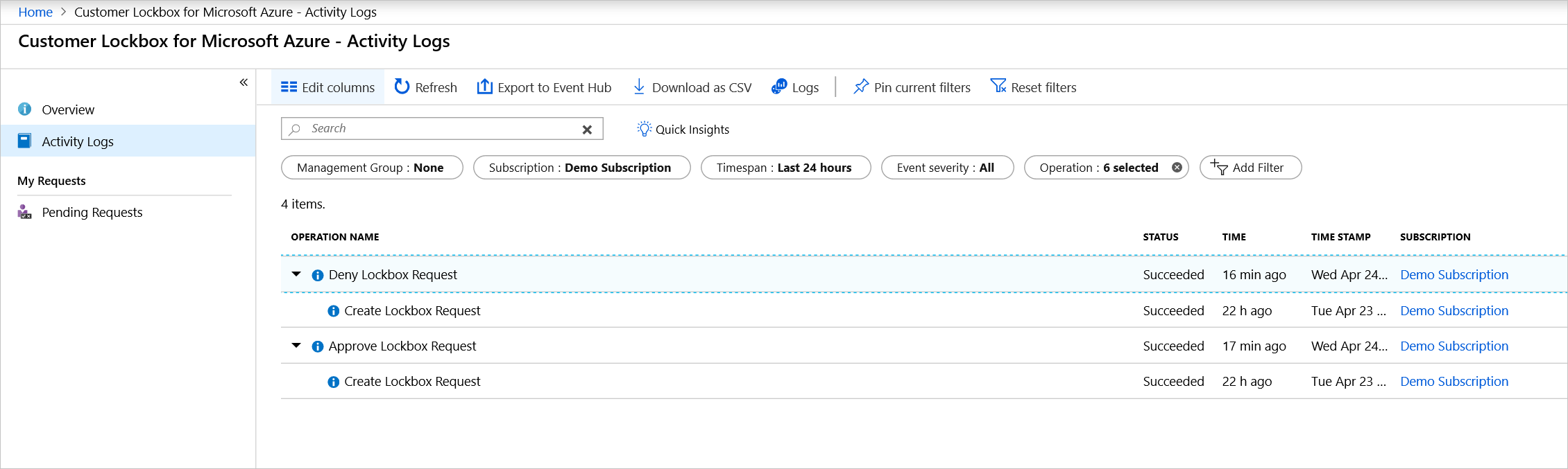 The following activity logs are available for Customer Lockbox: