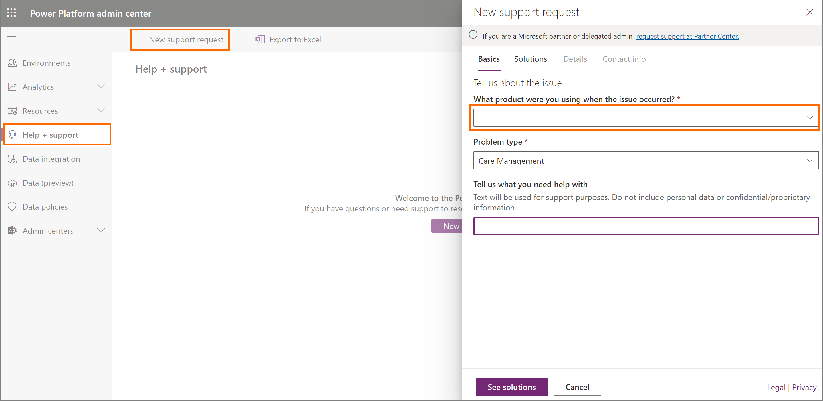 For more information, go to Get Help + Support in the Power Platform admin guide.