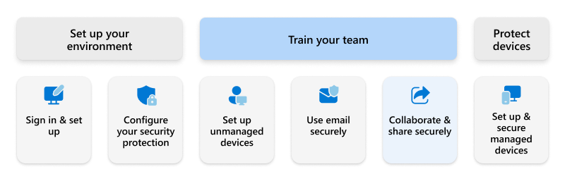 The best way to collaborate and share securely is to use Microsoft Teams, and Teams is included in Microsoft 365 Business Premium. With Teams, all your files and communications are in a protected environment. With Teams, you can help set up and configure secure file sharing and communication within your organization.
