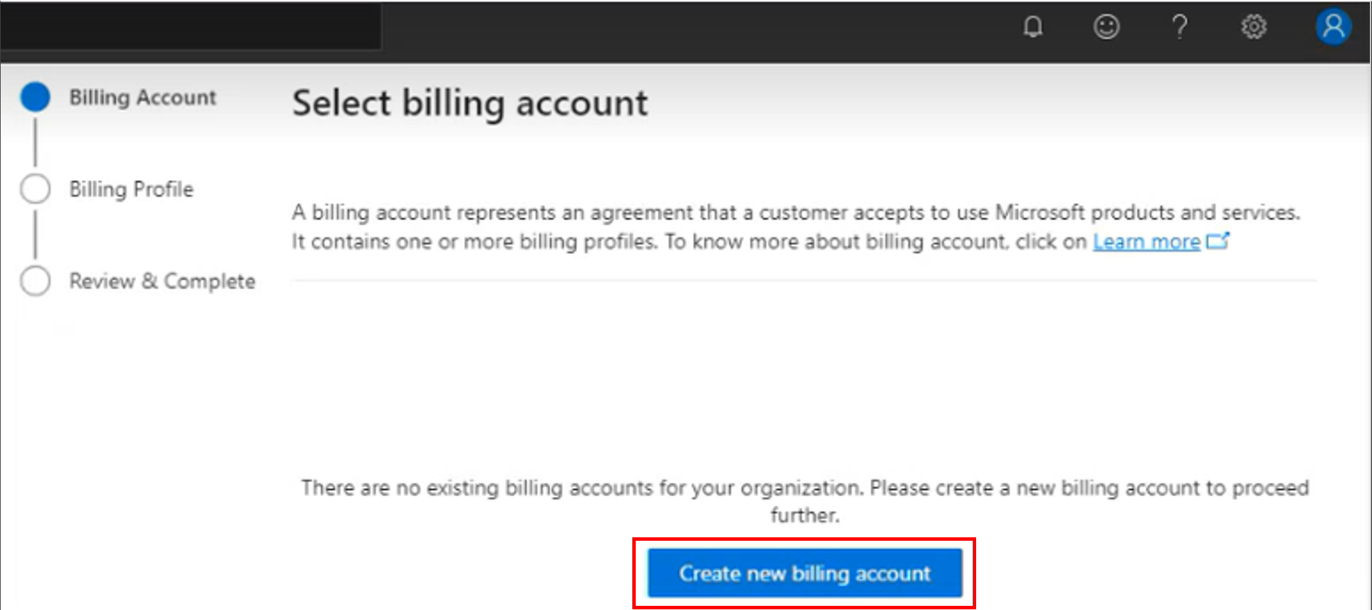 Select Create new billing account.