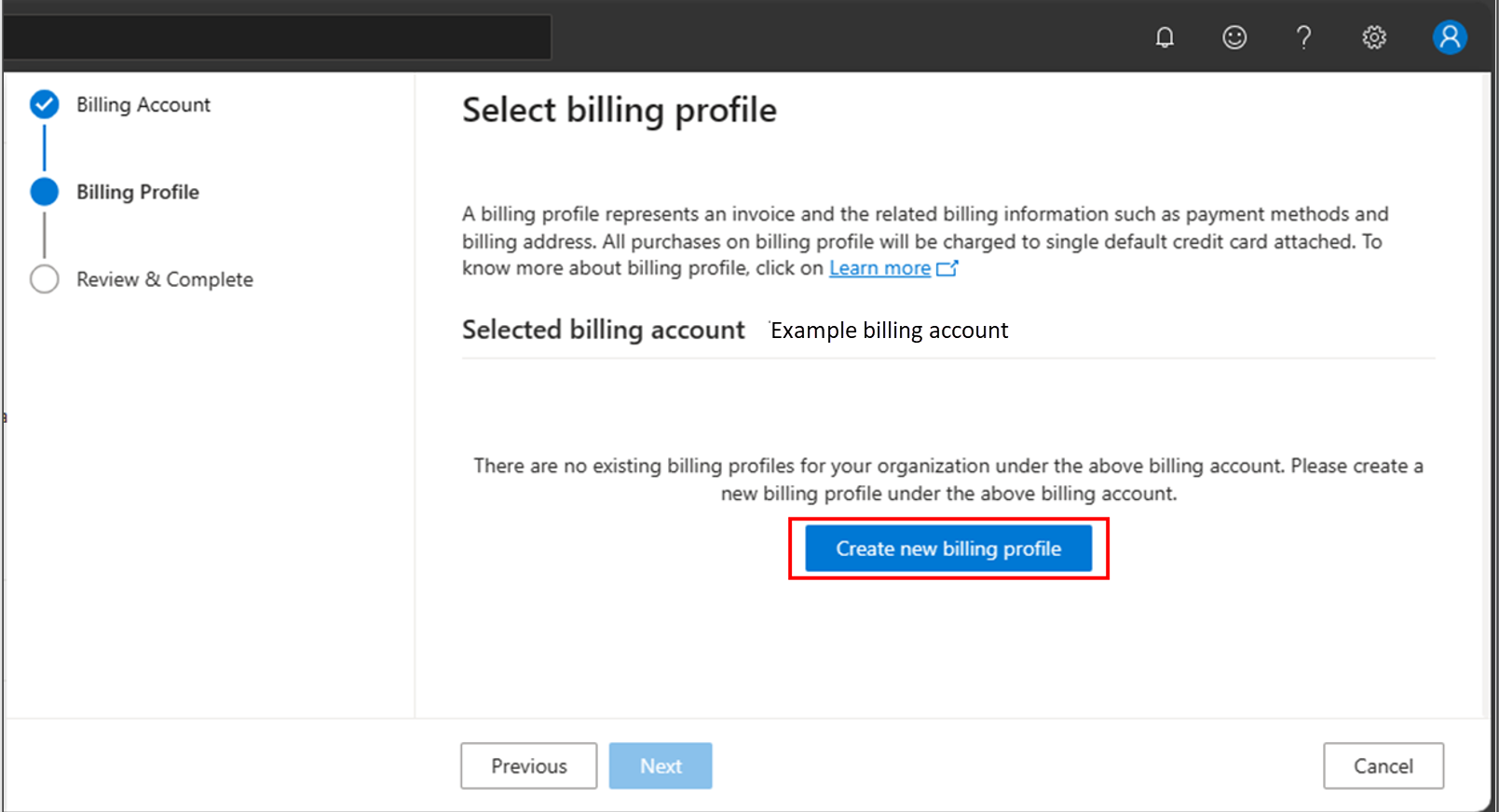 Select Create new billing profile.