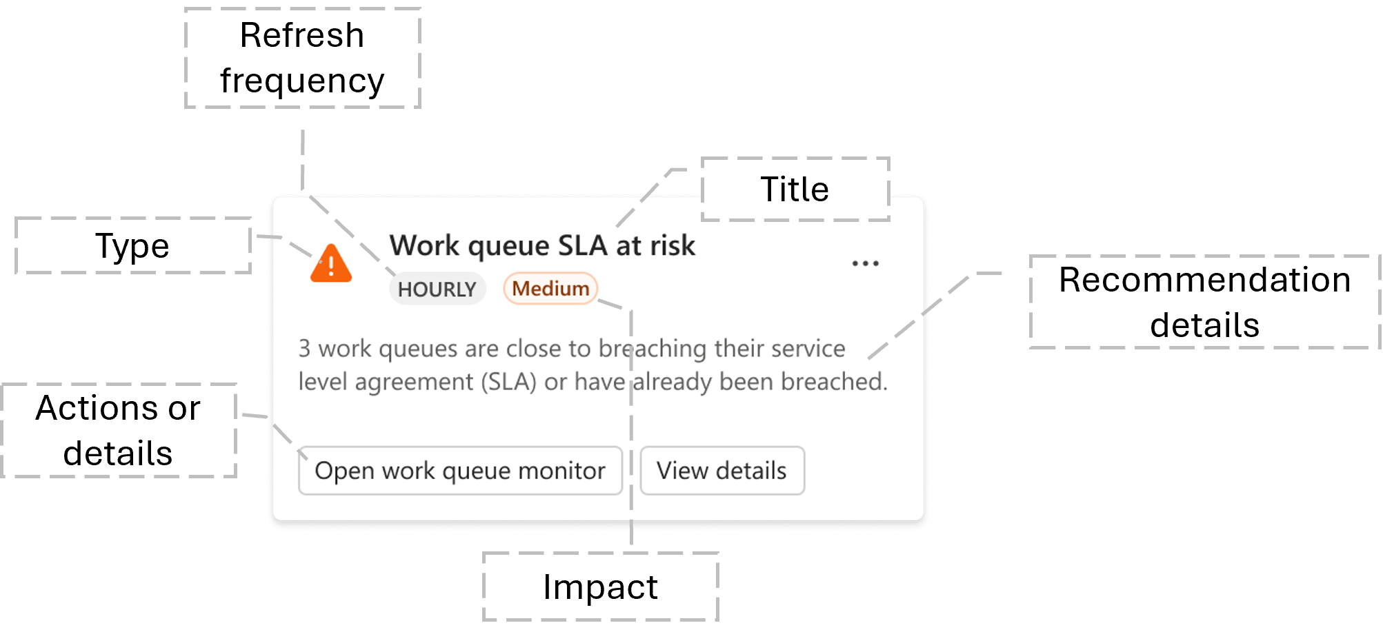 - Title: "Work queue SLA at risk" – this value provides a concise title of the issue.