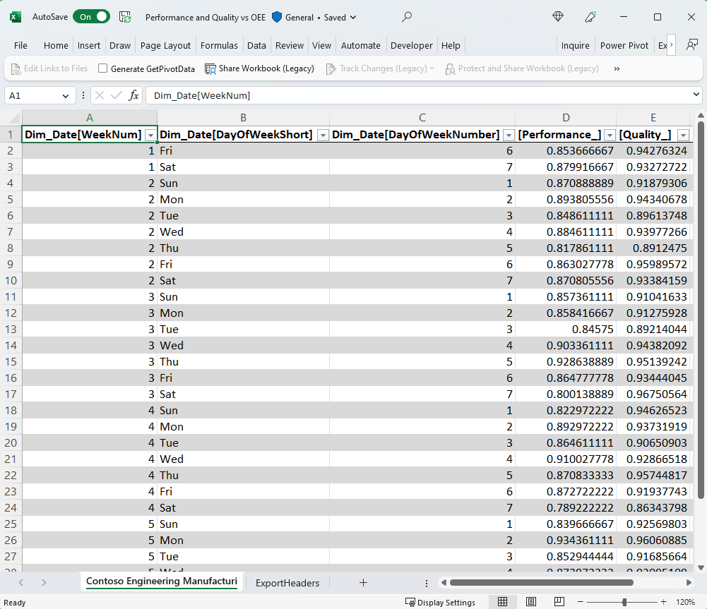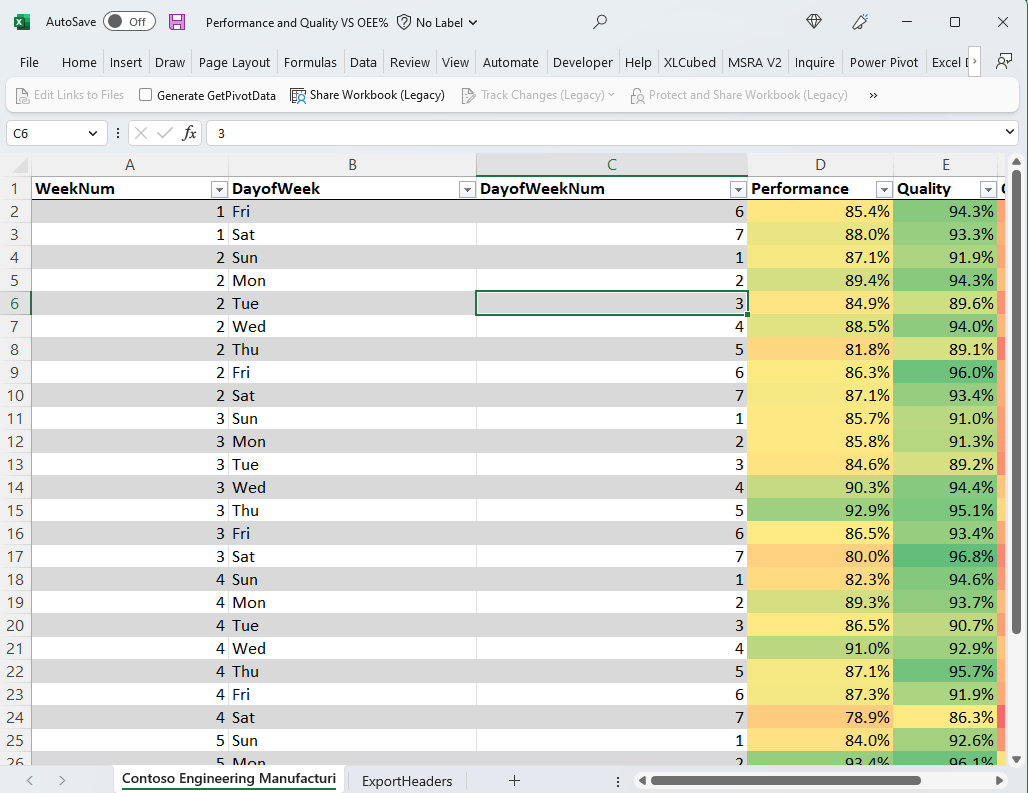 - If you connected via export with live connection, your Excel workbook contains an Excel table.