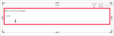 This next example shows you how to use a parameter to interact with your data. In this example, you put the parameter from the previous section to use. Specifically, you create a new measure by using a formula that includes the parameter. Then you adjust the value of that measure by using a slicer.